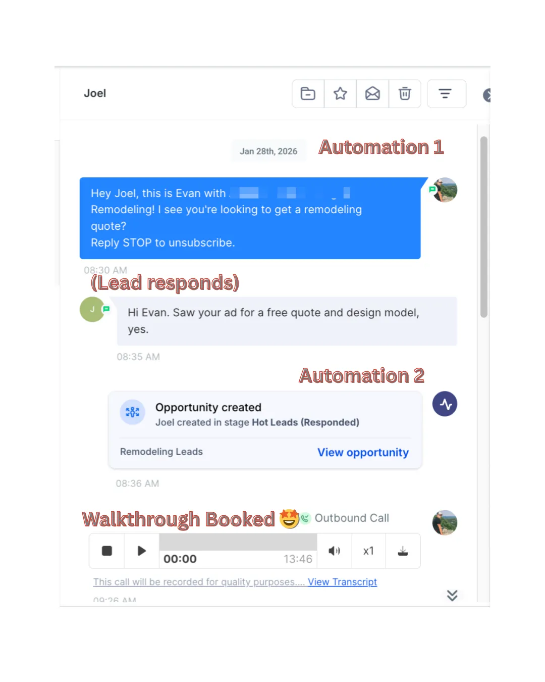 “Before FlowAutomate we were manually texting every new lead. If we got busy, they just went cold. Now every lead gets instant SMS and email follow-up, appointment reminders, and review requests. We added 27% more booked calls in 60 days—and my team got their evenings back.”